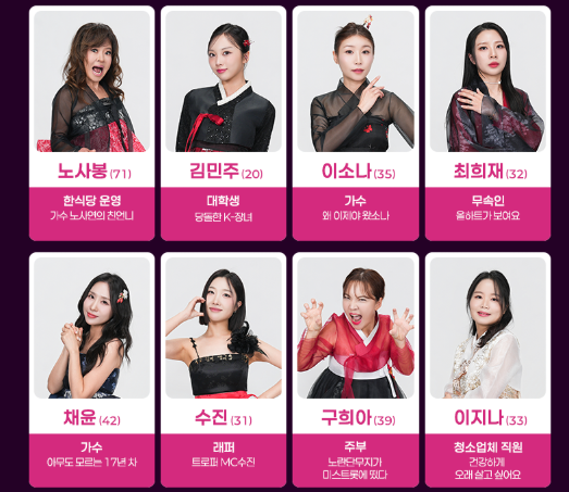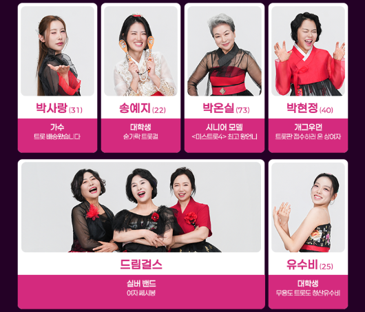 | 나이 제한 완전 폐지 | 최연소 9세(전하윤)부터 최고령 73세(박온실)까지! 세대를 뛰어넘는 트로트 대통합의 장 |