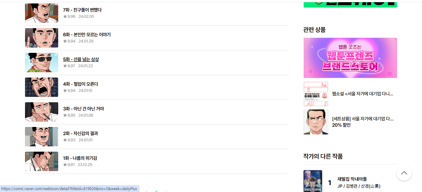 | 웹툰 제목 | 서울 자가에 대기업 다니는 김 부장 이야기 |