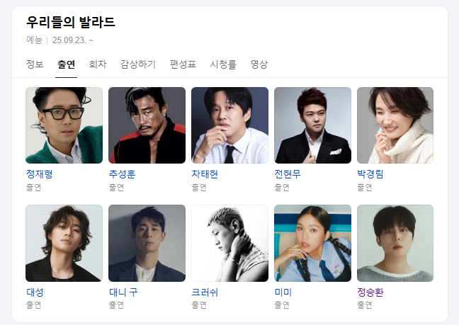 지금까지 우리들의 발라드 출연진, 방청, 방송시간 정보였습니다! 감사합니다!