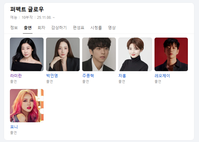 지금까지 퍼펙트 글로우 출연진, 정보 총정리였습니다! 감사합니다!
